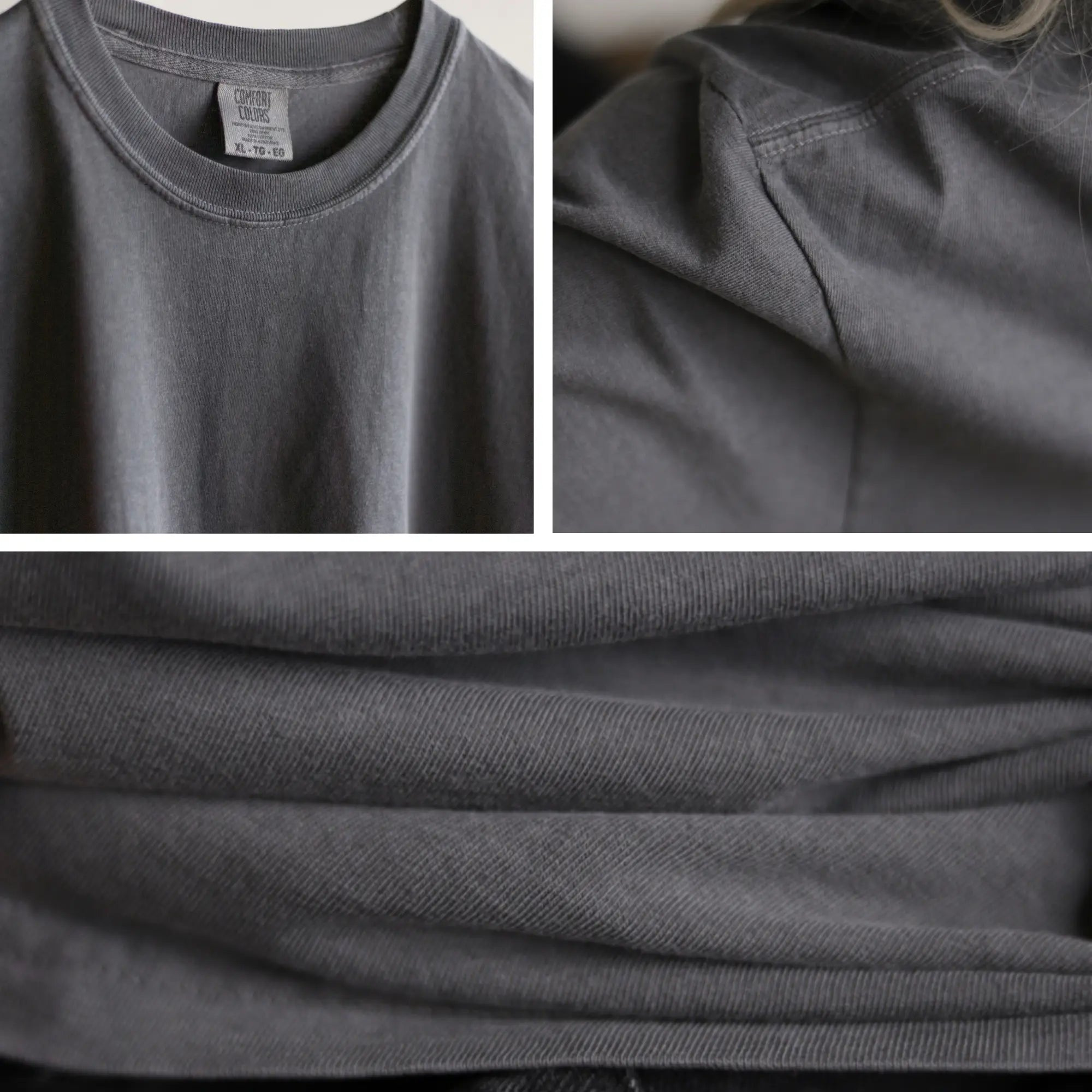Our tees are made from pre-shrunk heavyweight fabric (6.1 oz/yd² / 206.8 g/m²) and 100% ring-spun US cotton for a soft feel and reliable fit.